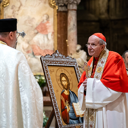 Der Wiener Erzbischof, für den angesichts seines 80. Geburtstags im Jänner demnächst ein Nachfolger ernannt werden dürfte, ist seit drei Jahrzehnten auch Ordinarius und somit Letztverantwortlicher der mit Rom verbundenen Kirchen. Deren Vertreter, angeführt vom zuständigen Generalvikar Yuriy Kolasa, würdigten Schönborns Verdienste bei einer vom Ostkirchenordinariat organisierten Feier im byzantinischen Ritus - der Göttlichen Liturgie des heiligen Johannes Chrysostomus. Wir waren mit der Kamera dabei.