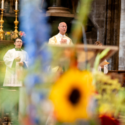 Ende August feiert Dompfarrer Toni Faber im Stephansdom den mittlerweile zur Tradition gewordenen Gottesdienst zu Ehren des Heiligen Fiacrius. Der Heilige ist der Patron der Gärtner, Blumenhändler, Lohnkutscher und Fiaker. Wir waren mit der Kamera dabei.