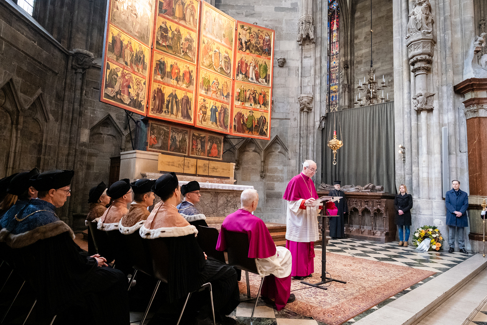 Am Gründungstag der Universität Wien wird traditionell im Stephansdom der feierliche „dies academicus“ begangen – eine liturgische Gedenkfeier zu Ehren von Rudolf IV., Herzog von Österreich, dem Stifter der Universität. Wir waren mit der Kamera dabei.
