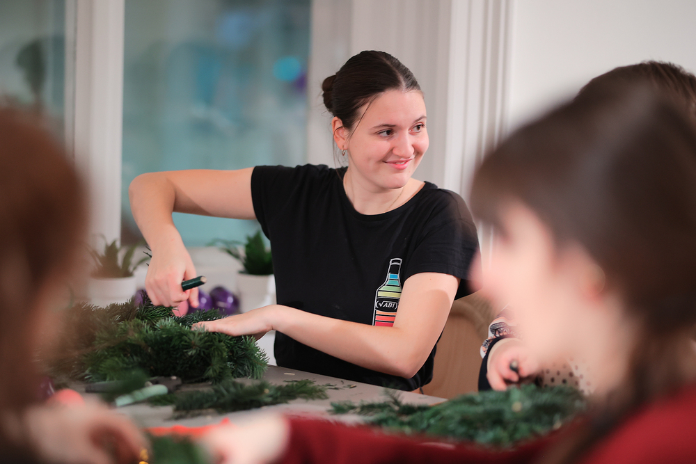 Adventkranzbinden mit StudentInnen der KHG